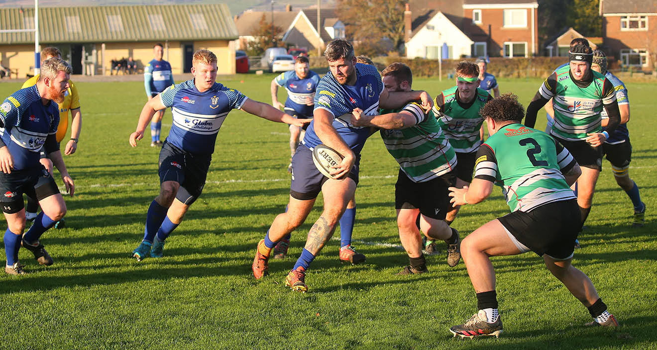 Clock Tower Andy Beal returned to partner Vice Captain Sam Whitaker in the 2nd row, whilst versatile front rower Ricky Rooney mover to the hooking berth. There was a welcome return to action for last season’s skipper Adam Roles-Middlehurst taking his place on the replacements bench. The rain halted just prior to kick off, as the home side chose to attack the slope in the first half. Kicking off with the matchballs kindly supplied by Charlesworth Landscapes, Stocksbridge immediately went on the front foot with the pack dominating their opponents, Beal, Whitaker & the consistent Woodcock making good ground in forward charges. Stocksbridge went close to opening the scoring when No 8 Jack ‘milky’ Martin was tackled just short of the line, & again when Tyers found supporting full back Saddington who was held up inches from the whitewash. With almost all the play in the Hornsea territory, the visitors gave away a succession of penalties, & a deliberate knock on saw the visiting fly-half dispatched to the sin bin for a ten minute spell. Stocksbridge took advantage of the superior numbers, & a massive scrum effort pushed the Hornsea pack back over their try line for Martin to plunge on the ball & open the scoring close enough for Spencer to convert. Both Jack Martin & Jack Spencer are available for sponsorship. The half ended with Stocksbridge again dominating both territory & possession, & a score of Stocksbridge Rugby 7pts – Hornsea nil.