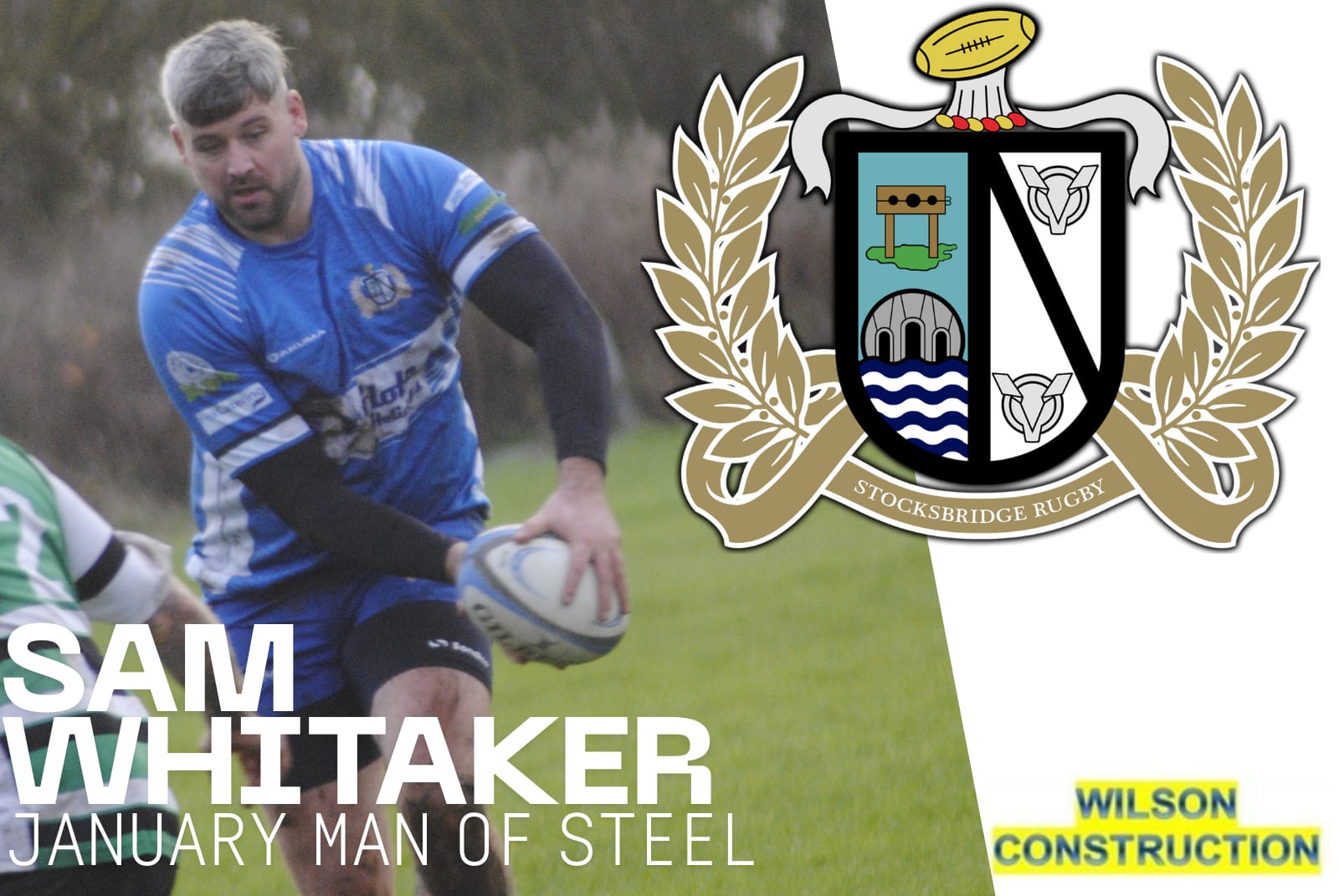 A stiff breeze & cloudy, overcast conditions greeted the players & sizable crowd at the Coal Pit Lane Arena, as Stocksbridge defended the slope against a big, & enthusiastic opposition. Player/Coach Aaron Kaye was forced into a re-shuffle of his starting line-up, with the versatile Callum 'whippet' Green named as hooker, & the equally versatile Jack 'crazy feet' Spencer selected at fly half for the un-available Scotty Bowskill. Experienced back rowers Reece 'diesel' Aspin & Tommy 'the gun' Spencer brought a re-assuring depth to the match day squad. The visitors started strongly, with their heavy forwards pummelling the defensive blue wall. Stocksbridge held firm & almost from their first serious attack, a well worked line out move turned into a rolling maul & 'slammin' Sam Whitaker, sponsored by S&M Pipeworks, plunged over from close range to open the scoring, easily converted by Harrison 'the storm' Norman, kindly sponsored by David & Jacqueline Lambert. Withernsea hit back almost immediately with an opportunist try & conversion of their own, to bring the scores level, before happy hooker, Mikey 'vegas' Hartley, on as an early replacement for the injured Ricky 'rooney' James, earned the biggest cheer of the day as he slipped thru the visitors defensive line to register his first try for 3 seasons, Norman was again successful with the conversion. Probably the try of the day came next when the forwards won good line out ball, that man Frith fed Spencer who unleashed his back line, quickly recycled ball found Whitaker on the charge to register his 2nd touchdown of the day, this time too far out for Norman to add the extras. As half time approached, the dangerous 'storm' Norman earned Stocksbridge their try bonus point with a searing break from half way, stepping thru 4 would be defenders to score under the posts, Jake Bevan, sponsored by Mackenzie Stocks Joinery, successfully took over the kicking duties. Half Time : Stocksbridge Rugby 26pts - Withernsea RUFC 7pts.